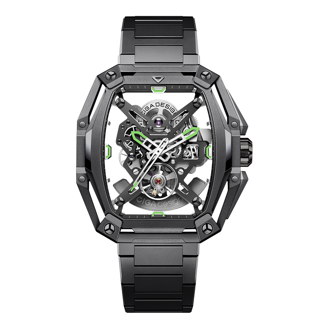 Description 1. German Design Award 2020Winner of the German Design Award 2020 for its bold structure and refined mechanical style.2. Dual-sided skeleton designOffers a clear view of the movement, revealing gears and bridges in full mechanical detail.3. Tonneau-Shaped CaseThe curved case fits naturally on...